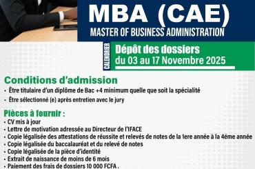 Appel à candidatures : MBA (CAE) – Master of Business Administration de l’IFACE